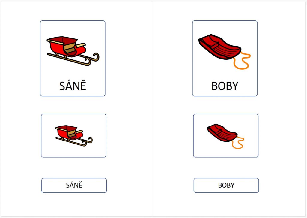 Na 3D tiskárně jsme si vytiskli podložku a k ní vytvořili karty na téma Zima. Obojí se skvěle hodí pro metodu globálního čtení. Globální čtení je metoda, kdy se dítě učí rozpoznávat celá slova jako vizuální symboly, podobně jako obrázky.