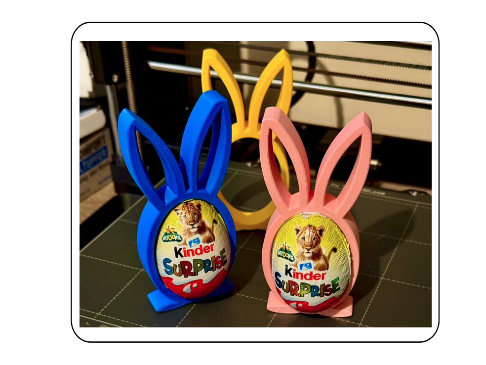 Děti milují čokoládu, tak proč ji nezabalit do něčeho speciálního… Držák na Kinder vajíčko Stojánek na tyčinky Kinder & Merci Vše tisknuto na Prusa MK4S a připraveno potěšit během Velikonoc!…