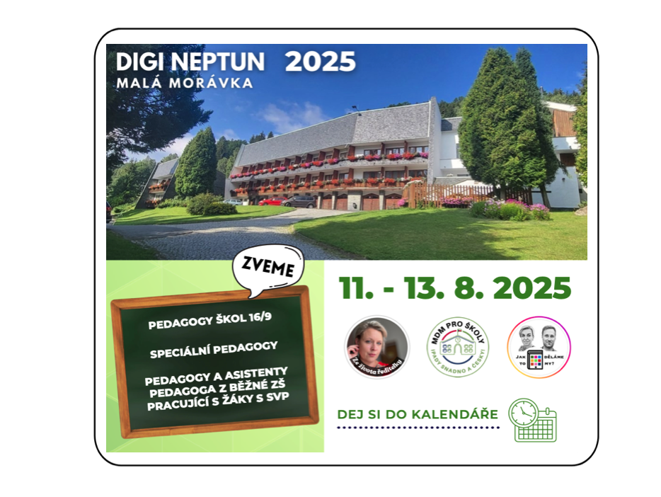 Od pondělí 11. srpna do středy 13. srpna se v malebné Malé Morávce uskutečnila letní vzdělávací akce DigiNeptun. Třídenní setkání jsme připravili pro pedagogy ze základních škol podle §16 odst.…
